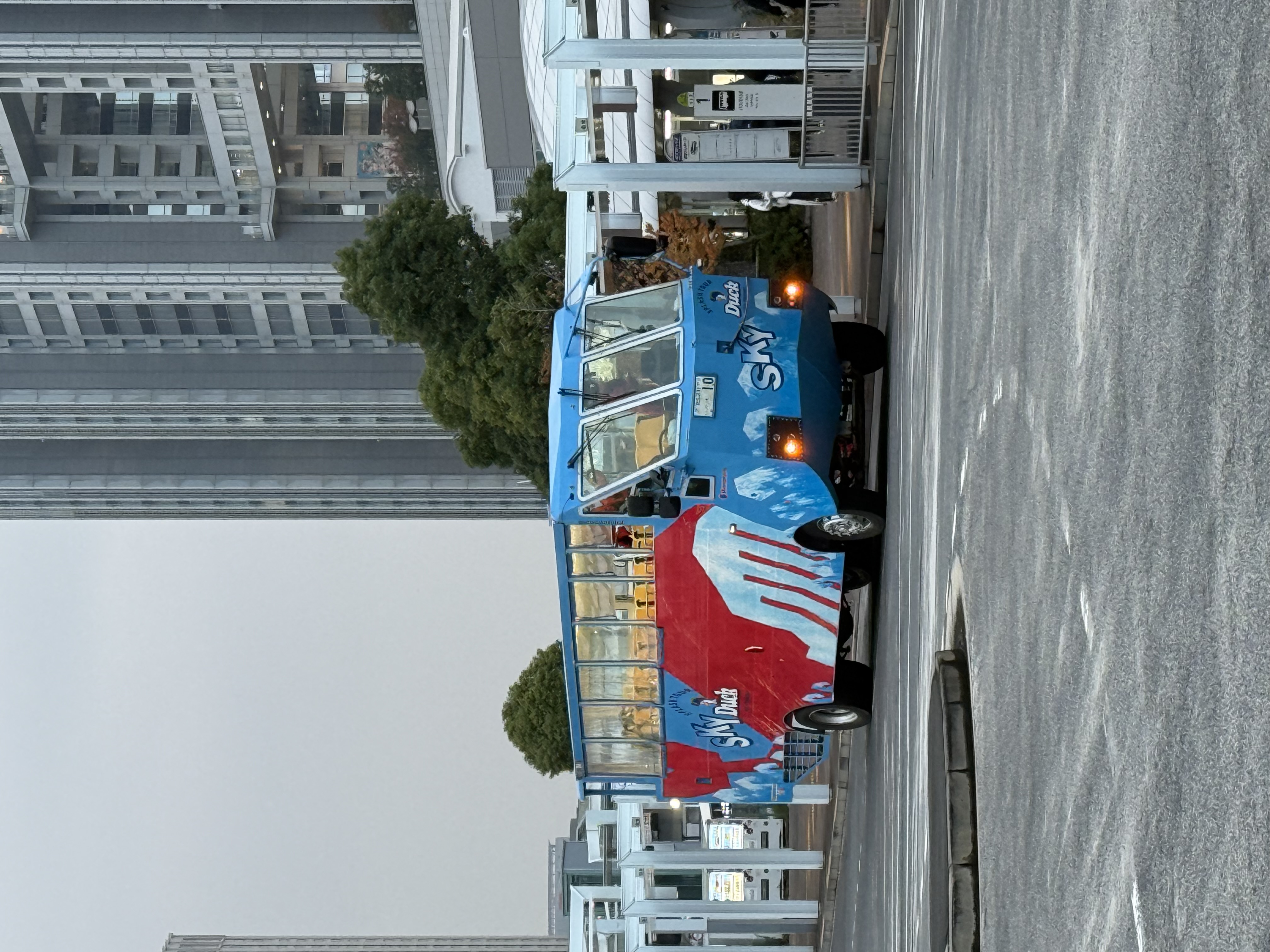수륙양용버스로 추억을 만들어 보자! 육상 주행 시에는 2층 오픈형 버스와 같은 높이입니다.